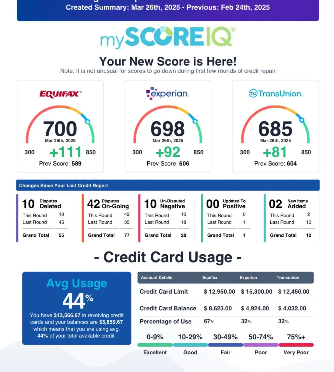 6+ Full Rounds of Disputes to Experian, TransUnion & Equifax